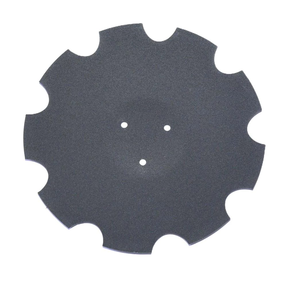 - Особлива форма: Зубчаста (ромашко-подібна) форма диска дозволяє ефективно різати та подрібнювати пожнивні рештки, бур’яни та брили ґрунту. Це значно покращує якість обробки та сприяє швидкому розкладанню органічних матеріалів.