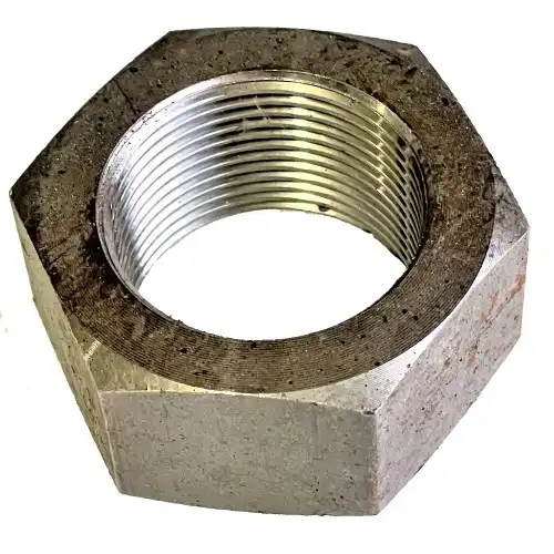 Це деталь дискового плуга, яка служить для кріплення стійки робочого органу до рами плуга. Гайка виготовлена з високоякісної сталі, що забезпечує її міцність і довговічність.