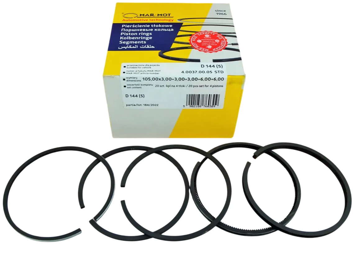 Комплект поршневих кілець Д21-1004060 / 4.0037.00.05 (Mar‑Mot), 5 кілець — це надійне та якісне рішення для відновлення працездатності двигунів Д‑21, Д-144, Т-25. Він забезпечує стабільну компресію, знижує витрату масла та продовжує ресурс двигуна. Для власників тракторів та іншої техніки цей комплект є оптимальним вибором при капітальному ремонті чи плановій заміні поршневої групи.