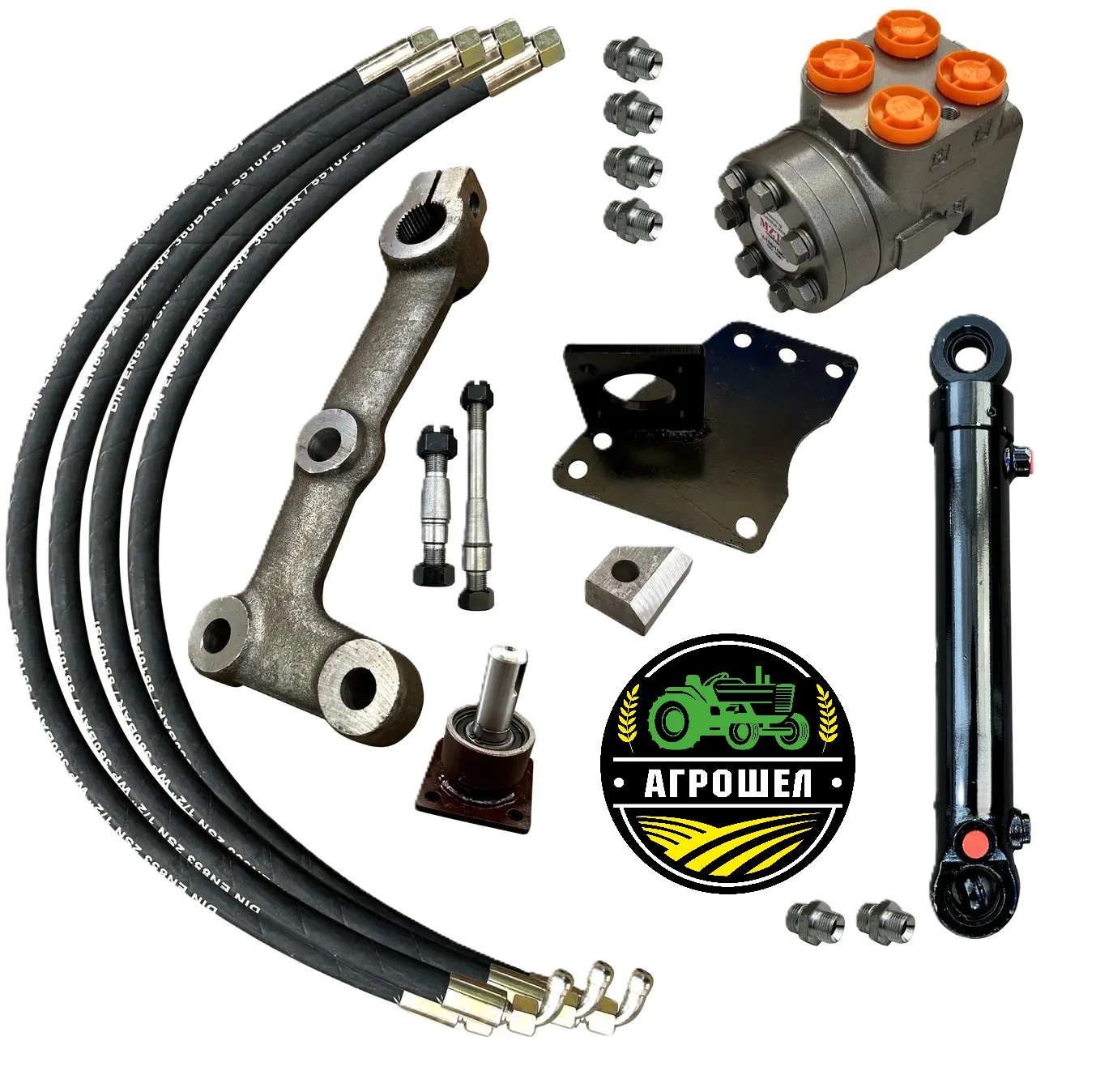 Це сучасне рішення для модернізації рульового управління трактора, яке забезпечує легке, точне та надійне керування навіть у складних умовах експлуатації. Комплект призначений для заміни стандартного гідропідсилювача керма (ГУР) на гідрооб’ємне рульове управління (ГОРУ) з насосом-дозатором. Завдяки універсальній конструкції, набір підходить для більшості моделей тракторів ЮМЗ, незалежно від типу кабіни чи модифікації.