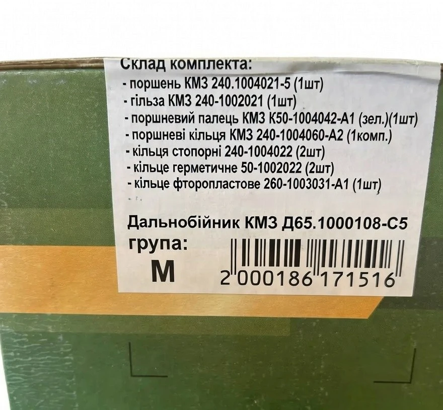 - Комплект складається з восьми поршнів, восьми гільз, восьми пальців поршневих і восьми комплектів поршневих кілець.