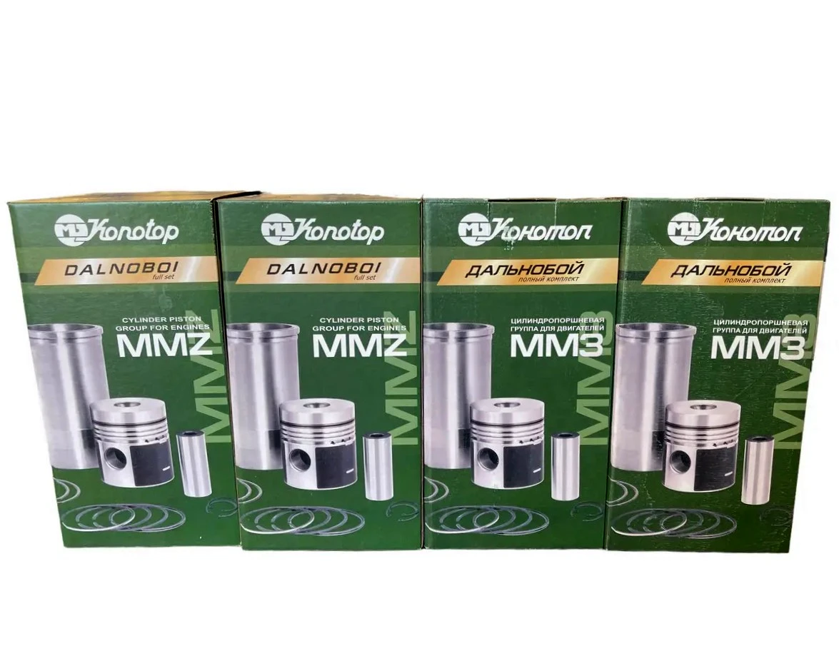 Це високоякісний поршнекомплект серії «Дальнобой», виробництва «Мотордеталь – Конотоп», призначений для капітального ремонту дизельних двигунів Д-240/Д-65, що встановлюються на тракторах МТЗ‑80/82 та іншій сільськогосподарській техніці. Комплект забезпечує повне відновлення циліндро‑поршневої групи, повертає двигуну номінальну потужність, економічність та довговічність.