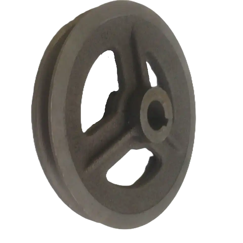 - Висока міцність та зносостійкість: Шків виготовлений з якісного чавуну, що гарантує його стійкість до механічних навантажень, ударів та стирання. Це забезпечує довговічний термін служби та мінімізує потребу в частих ремонтах.
